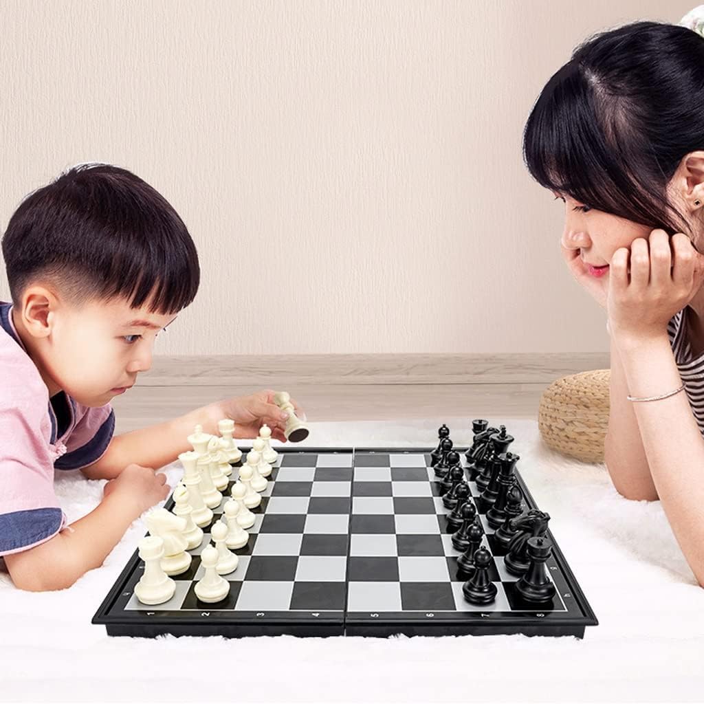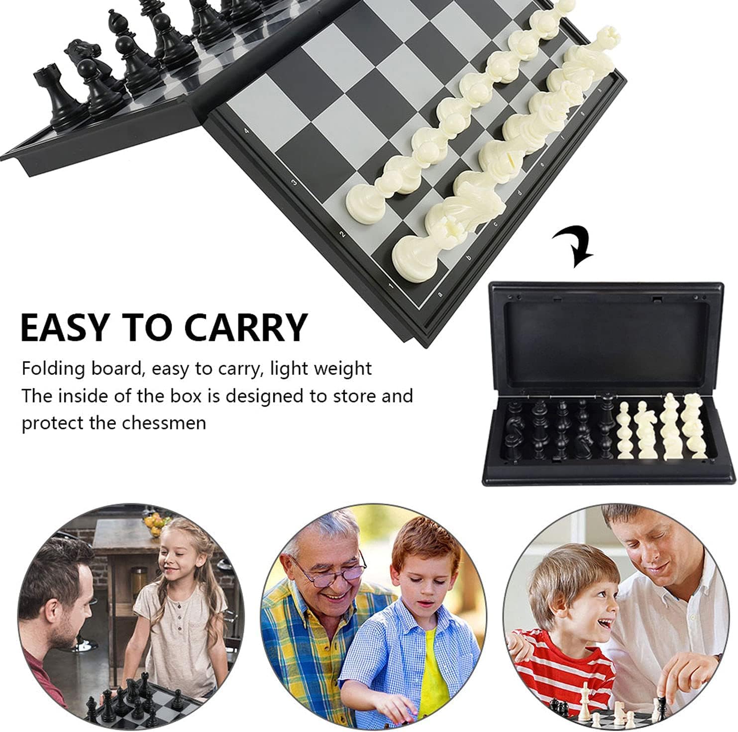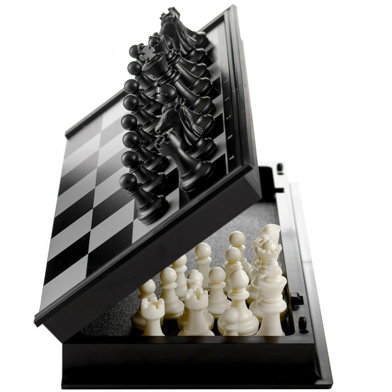Chess Board Set with Magnetic Pawns – Foldable Travel Friendly Games for Kids, Adults (Black and White)