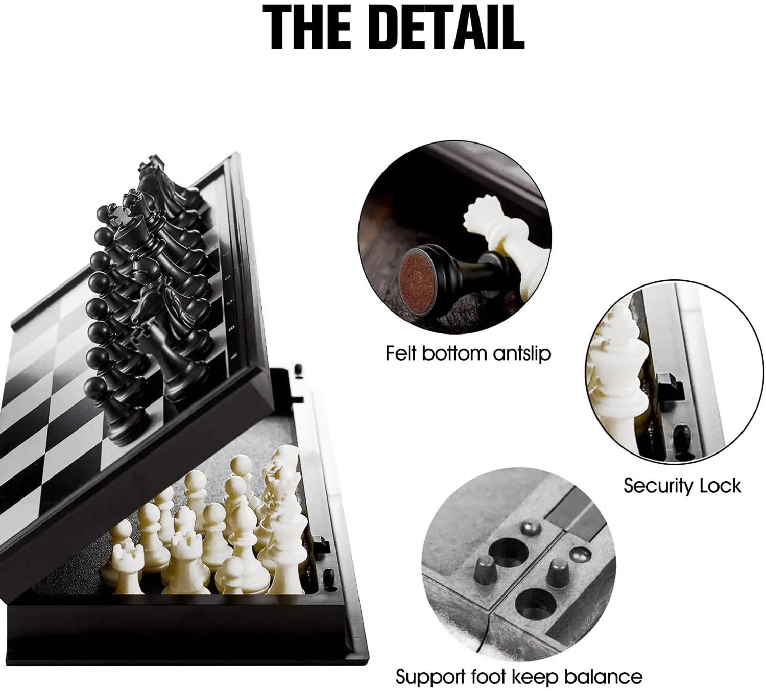 - MAGNETIC CHESS PIECES – The magnetic base of the chess pieces attaches securely to the chessboard, ensuring stable and uninterrupted gameplay at home, school, or while traveling.