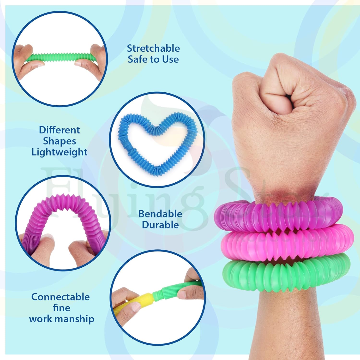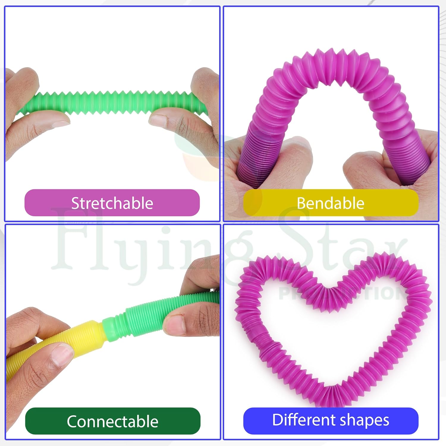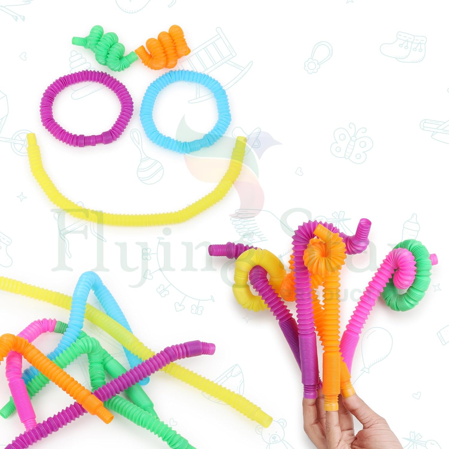 - 🌈【Relieve Stress】: When the pop tubes fidget toys is stretched and contracted,it will emit a cool sound, stimulate hearing and have a soothing effect.It can attract your attention and help you calm down and refocus in the most stressful situations. Makes fun sounds, gives some nice sensory input for sensory exploration!