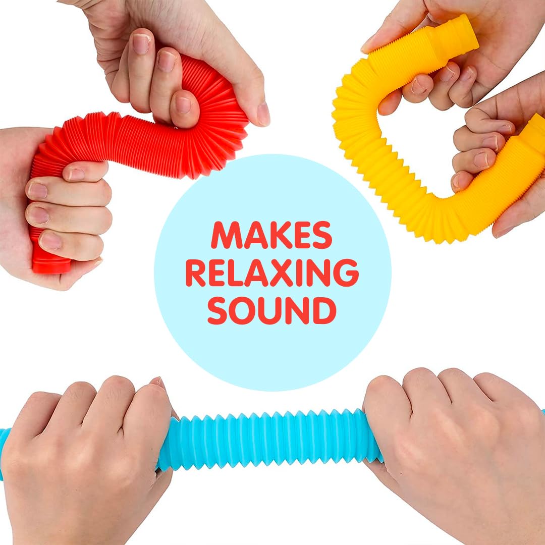 - [SENSORY & LEARNING] – Pop Tubes make learning fun – the way it should be! These sensory toys provide tactile and auditory stimulation, as well as encourage the development of fine motor skills, bilateral coordination, and cause and effect STEM learning. The vibrant colors, smooth ridges, and satisfying crinkly noise stimulate your senses for super sensory fun!