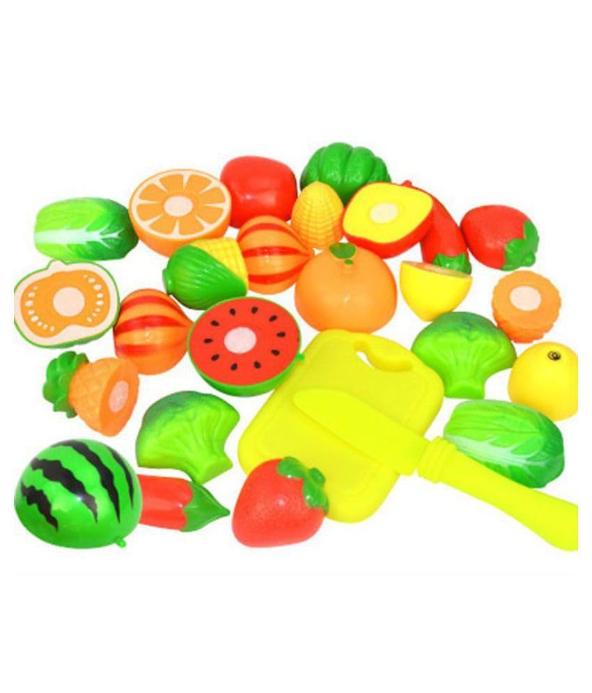 - Different colorful toy fruits for your kids. Each fruit and can be sliced in half because they are connected with tape. Smooth surface and curves. Safe for kids to play with.