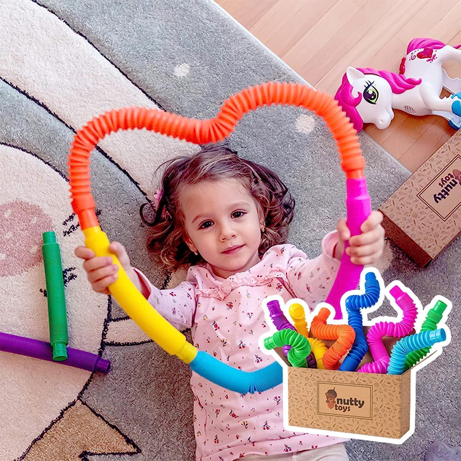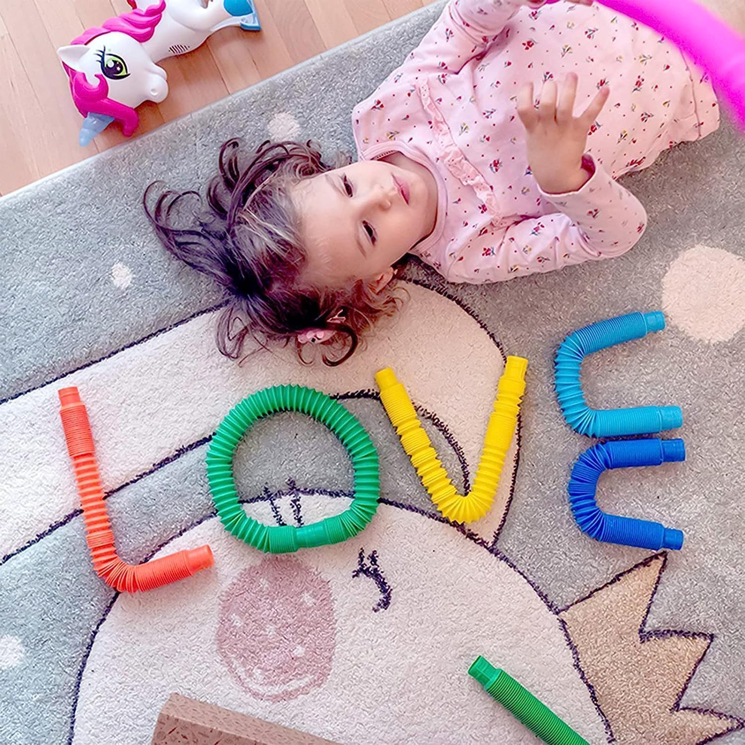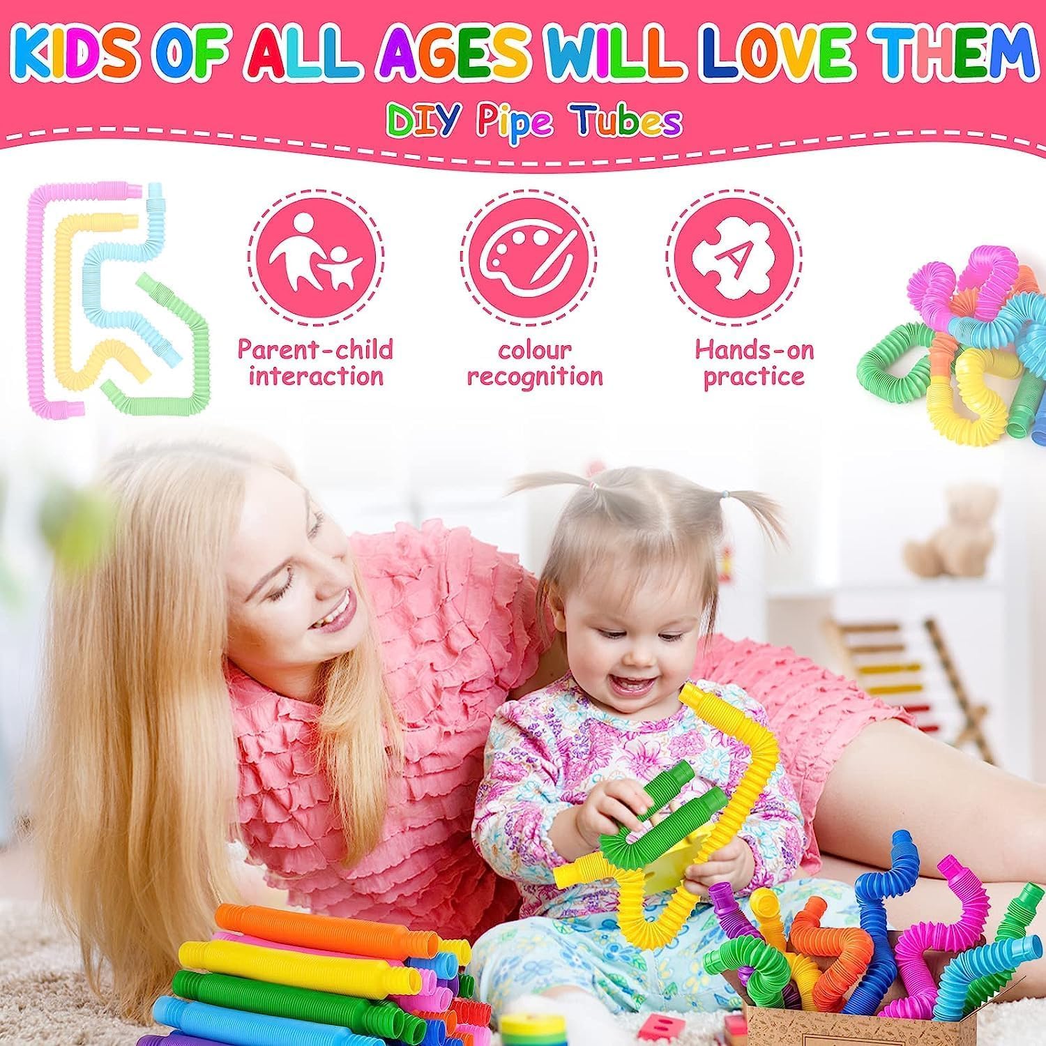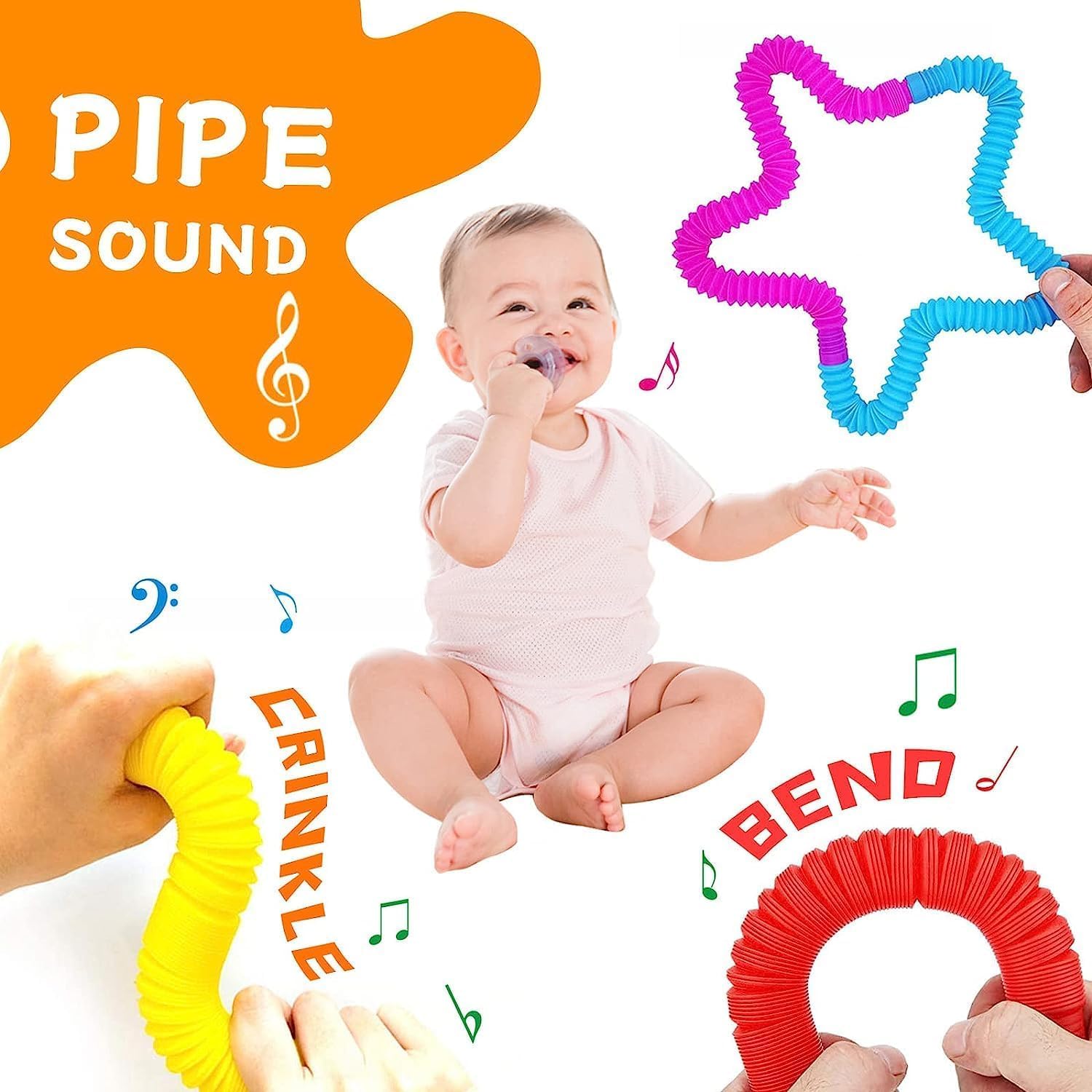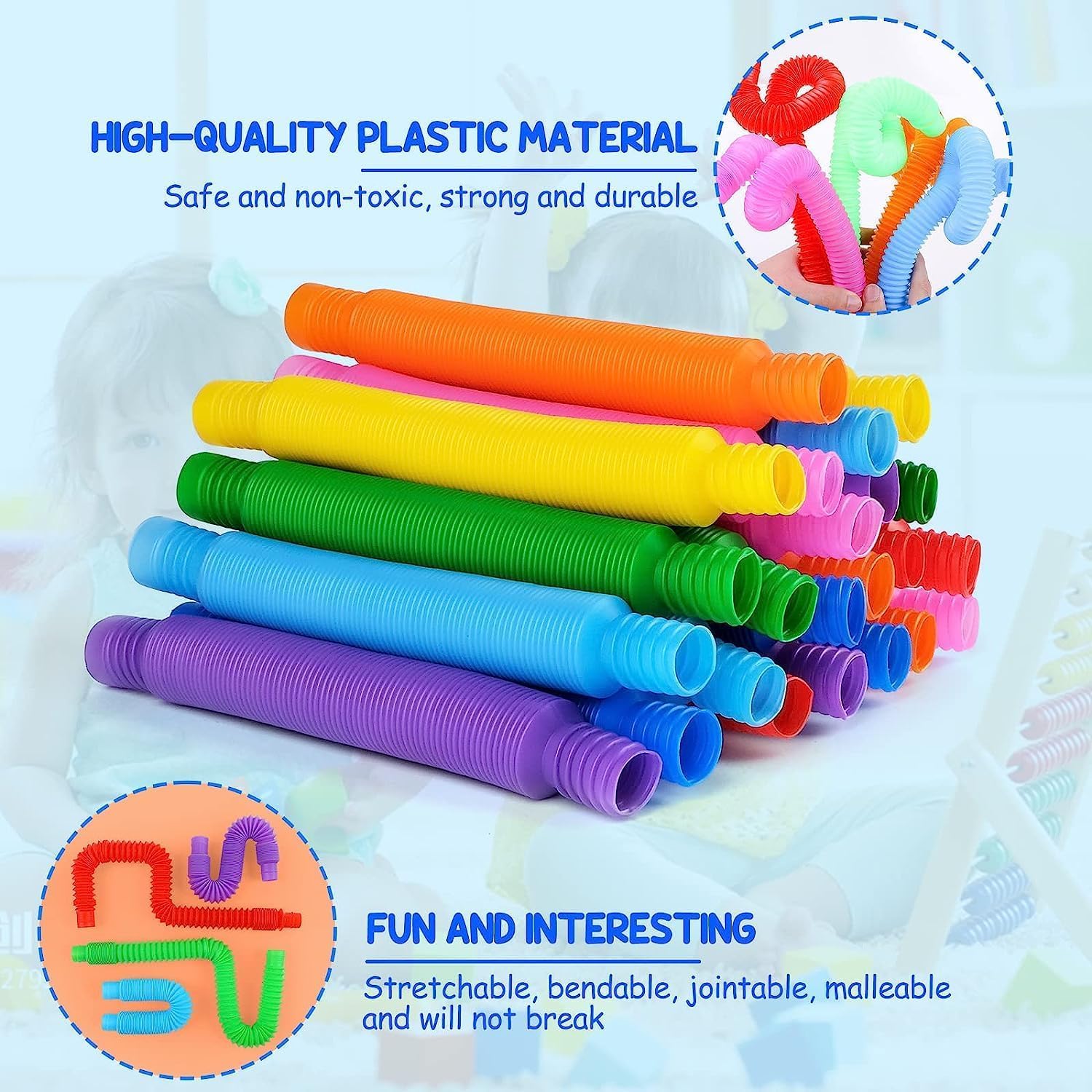 - ❄【Effective Stress Reduction】 These flexible and durable poptubes can be stretched and twisted into any shape with an interesting pop sound. Kids will love to hear this amazing sound. This can help them develop their imagination and hand-eye coordination skills.